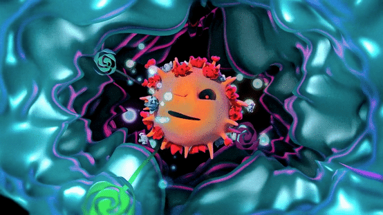 In this initial episode in spring of 2020, the first in what promised to be a continuing series, hollow-eyed Theo hovers inside a dank cavern, a bronchial stage for this one-virus play, eventually surrounded by other pretty, faceless, randomly floating objects. Theo expounds on fellow molds, bacterias, funguses and other spore-producing organisms that his audience doesn’t readily recognize as “life forms.” These additional fanciful looking characters that slowly fill Theo’s environment, a combination of the amorphous and crystalline, intersect in peaceful harmony. Smarmy little Theo can’t help but glow when reflecting that his compatriots are not like sentient beings participating in the higher up food chain, instead residing in a blissful state of unawareness, lacking any and all motivation other than simply to exist. Theo basks in this conception of utopia that exists only for the barely visible and universally ignored like itself, an idealized life we mere humans seem to crave.